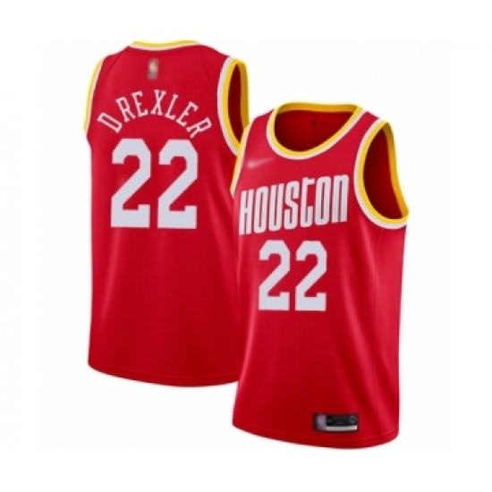 Men's Mitchell and Ness Houston Rockets #22 Clyde Drexler Authentic Red Throwback NBA Jersey