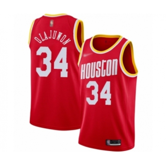 Women's Houston Rockets #34 Hakeem Olajuwon Swingman Red Hardwood Classics Finished Basketball Jersey