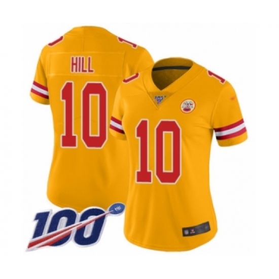 Women's Kansas City Chiefs #10 Tyreek Hill Limited Gold Inverted Legend 100th Season Football Jersey