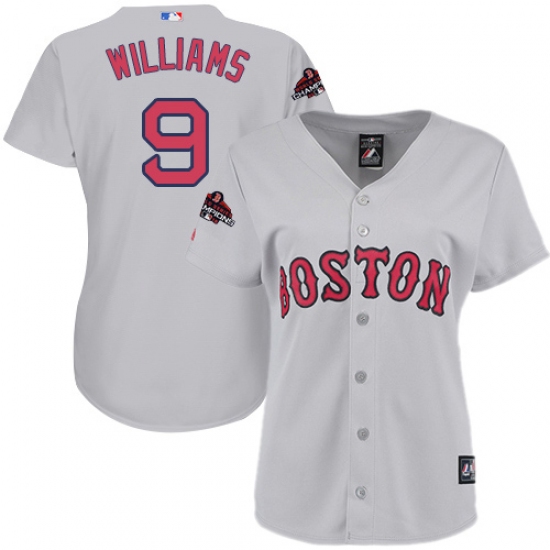 Women's Majestic Boston Red Sox #9 Ted Williams Authentic Grey Road 2018 World Series Champions MLB Jersey