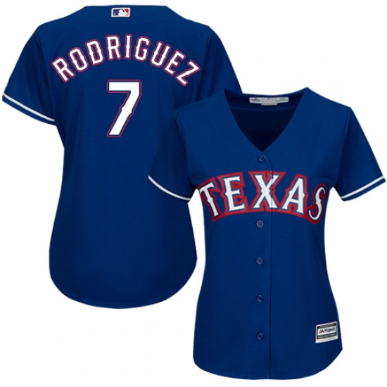 Women's Majestic Texas Rangers #7 Ivan Rodriguez Authentic Royal Blue Alternate 2 Cool Base MLB Jersey