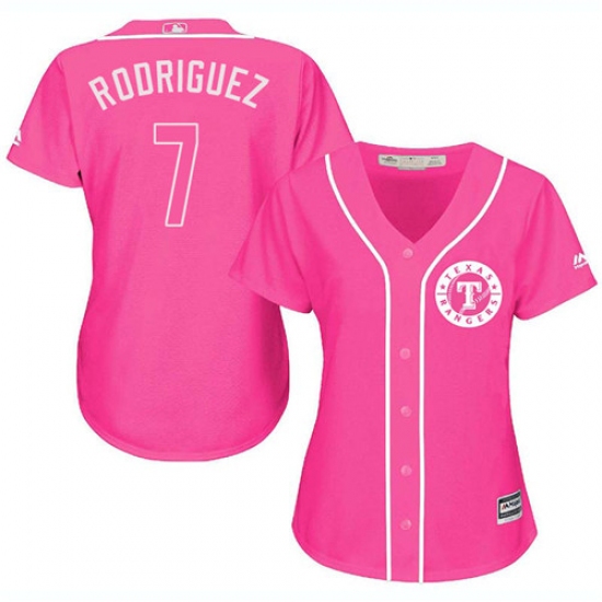 Home>MLB>Texas Rangers>Ivan Rodriguez>Women's Majestic Texas Rangers #7 Ivan Rodriguez Replica Pink Fashion Cool Base MLB Jersey