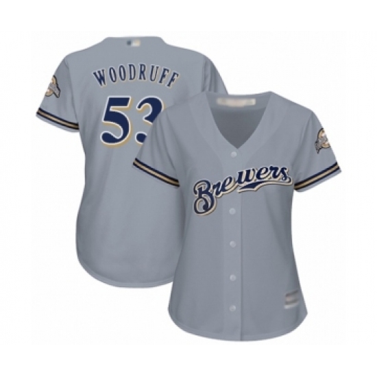 Women's Milwaukee Brewers #53 Brandon Woodruff Authentic Grey Road Cool Base Baseball Jersey