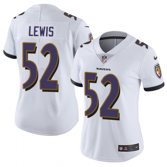 Women's Nike Baltimore Ravens #52 Ray Lewis White Vapor Untouchable Limited Player NFL Jersey