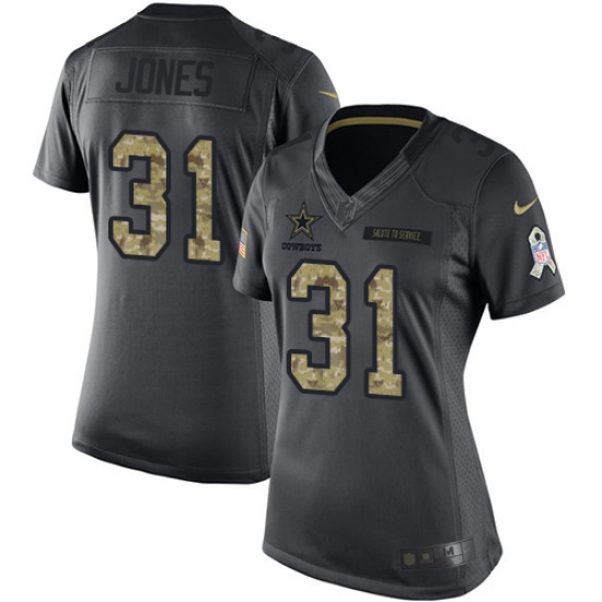 Home>NFL>Dallas Cowboys>Byron Jones>Women's Nike Dallas Cowboys #31 Byron Jones Limited Black 2016 Salute to Service NFL Jersey