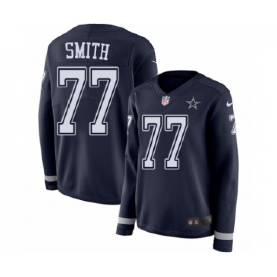 Women's Nike Dallas Cowboys #77 Tyron Smith Limited Navy Blue Therma Long Sleeve NFL Jersey