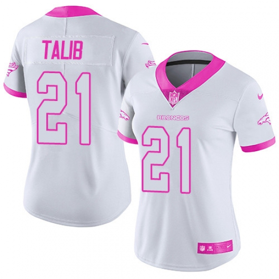 Home>NFL>Denver Broncos>Aqib Talib>Women's Nike Denver Broncos #21 Aqib Talib Limited White/Pink Rush Fashion NFL Jersey