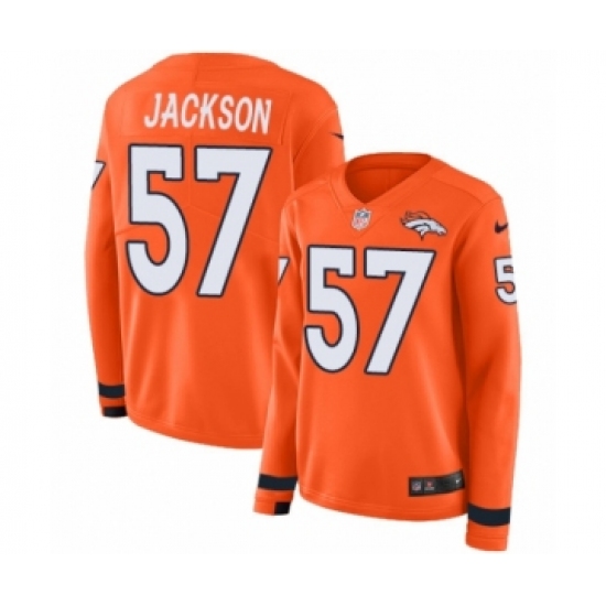 >Women's Nike Denver Broncos #57 Tom Jackson Limited Orange Therma Long Sleeve NFL Jersey