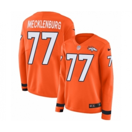 >Women's Nike Denver Broncos #77 Karl Mecklenburg Limited Orange Therma Long Sleeve NFL Jersey
