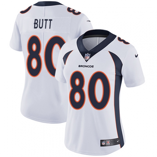 Home>NFL>Denver Broncos>Jake Butt>Women's Nike Denver Broncos #80 Jake Butt White Vapor Untouchable Limited Player NFL Jersey