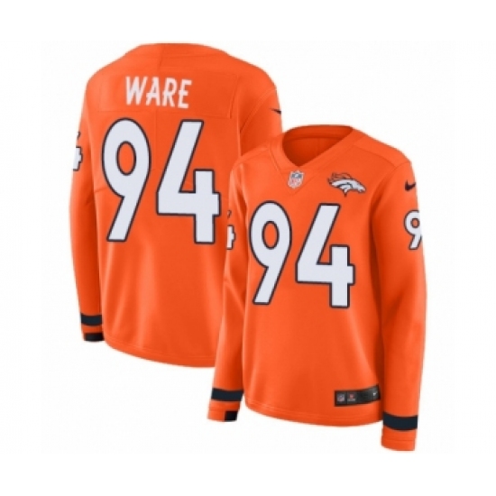 >Women's Nike Denver Broncos #94 DeMarcus Ware Limited Orange Therma Long Sleeve NFL Jersey