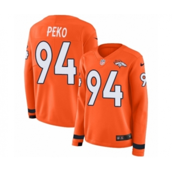 Women's Nike Denver Broncos #94 Domata Peko Limited Orange Therma Long Sleeve NFL Jersey