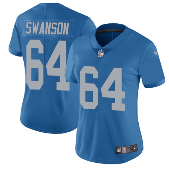 Home>NFL>Detroit Lions>Travis Swanson>Women's Nike Detroit Lions #64 Travis Swanson Limited Blue Alternate Vapor Untouchable NFL Jersey