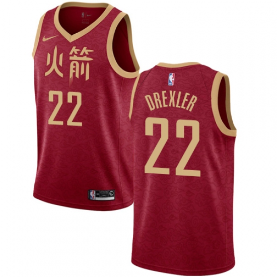 Women's Nike Houston Rockets #22 Clyde Drexler Swingman Red NBA Jersey - 2018 19 City Edition