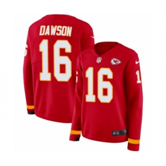Women's Nike Kansas City Chiefs #16 Len Dawson Limited Red Therma Long Sleeve NFL Jersey