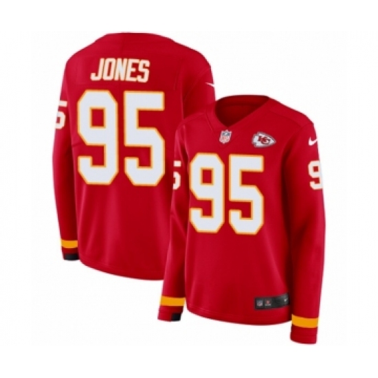 Women's Nike Kansas City Chiefs #95 Chris Jones Limited Red Therma Long Sleeve NFL Jersey