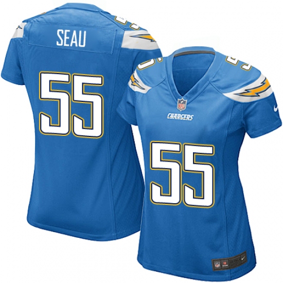 Home>NFL>Los Angeles Chargers>Junior Seau>Women's Nike Los Angeles Chargers #55 Junior Seau Game Electric Blue Alternate NFL Jersey