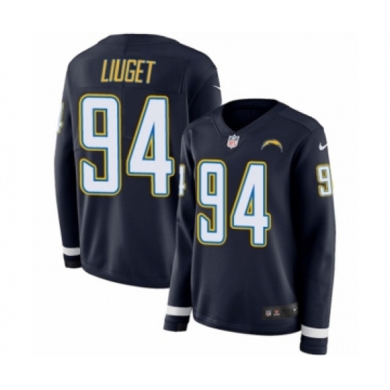 >Women's Nike Los Angeles Chargers #94 Corey Liuget Limited Navy Blue Therma Long Sleeve NFL Jersey