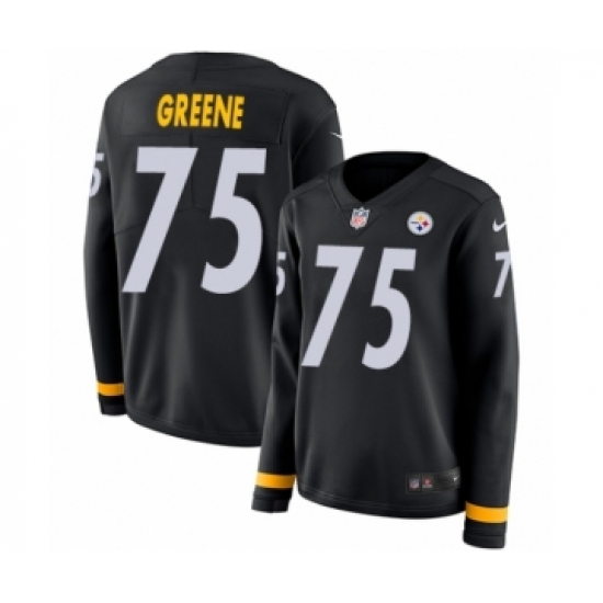 >Women's Nike Pittsburgh Steelers #75 Joe Greene Limited Black Therma Long Sleeve NFL Jersey