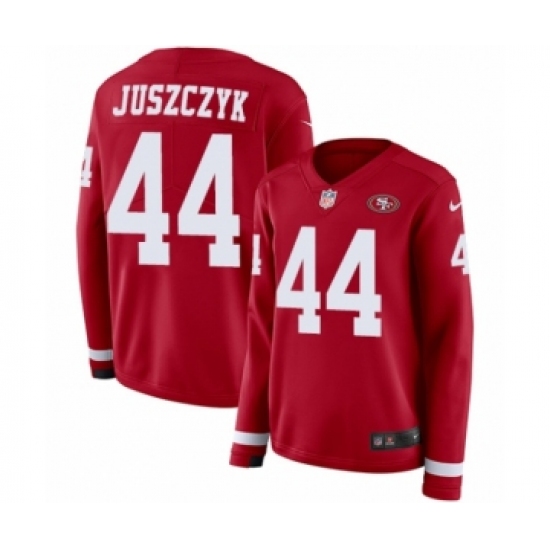 >Women's Nike San Francisco 49ers #44 Kyle Juszczyk Limited Red Therma Long Sleeve NFL Jersey