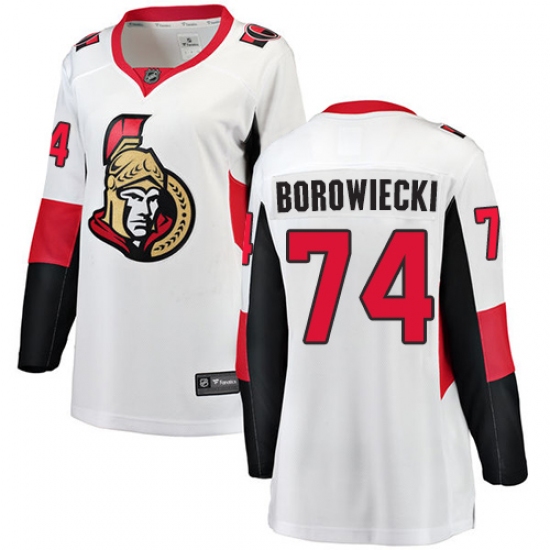 Home>NHL>Ottawa Senators>Mark Borowiecki>Women's Ottawa Senators #74 Mark Borowiecki Fanatics Branded White Away Breakaway NHL Jersey