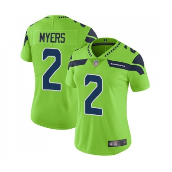 >Women's Seattle Seahawks #2 Jason Myers Limited Green Rush Vapor Untouchable Football Jersey