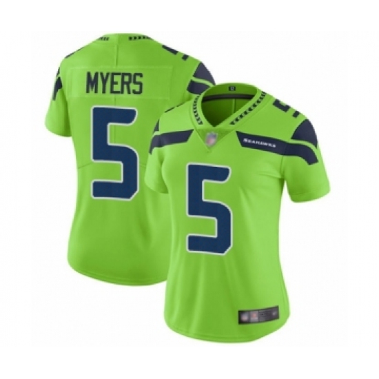 >Women's Seattle Seahawks #5 Jason Myers Limited Green Rush Vapor Untouchable Football Jersey