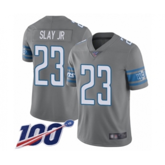>Youth Detroit Lions #23 Darius Slay Limited Steel Rush Vapor Untouchable 100th Season Football Jersey