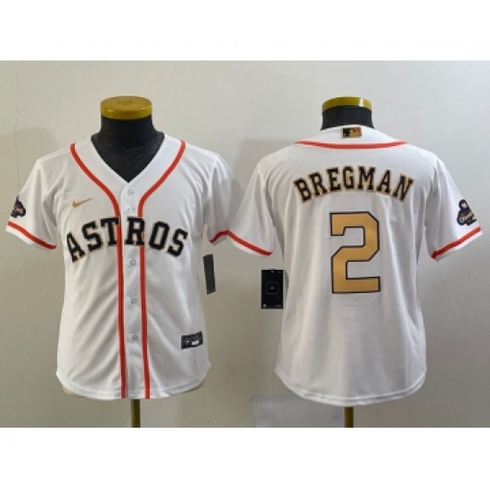 Youth Houston Astros #2 Alex Bregman 2023 White Gold World Serise Champions Cool Base Stitched Jersey