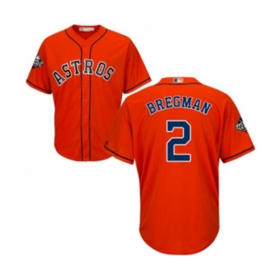 Youth Houston Astros #2 Alex Bregman Authentic Orange Alternate Cool Base 2019 World Series Bound Baseball Jersey