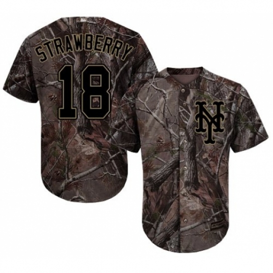 >Youth Majestic New York Mets #18 Darryl Strawberry Authentic Camo Realtree Collection Flex Base MLB Jersey