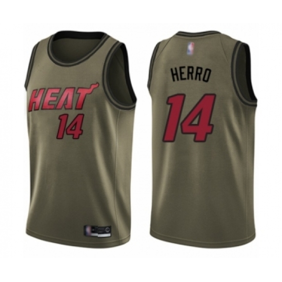 >Youth Miami Heat #14 Tyler Herro Swingman Green Salute to Service Basketball Jersey