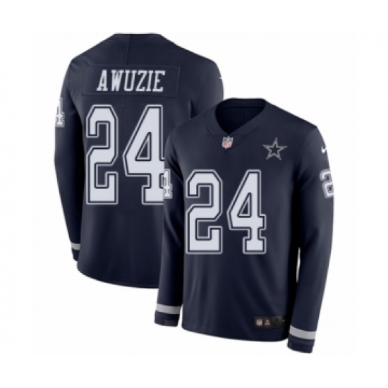 >Youth Nike Dallas Cowboys #24 Chidobe Awuzie Limited Navy Blue Therma Long Sleeve NFL Jersey