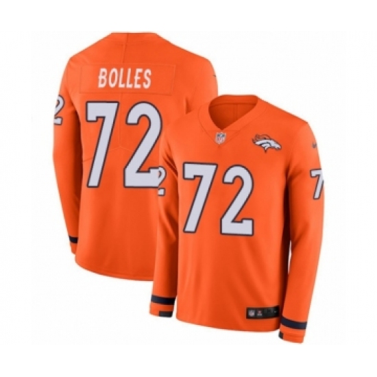 Youth Nike Denver Broncos #72 Garett Bolles Limited Orange Therma Long Sleeve NFL Jersey