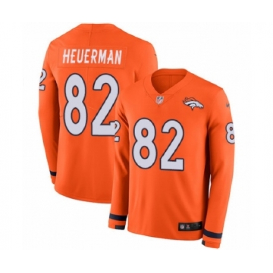 >Youth Nike Denver Broncos #82 Jeff Heuerman Limited Orange Therma Long Sleeve NFL Jersey