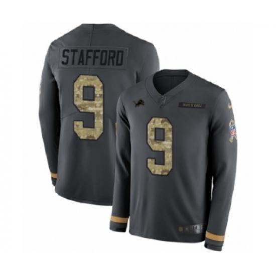 Youth Nike Detroit Lions #9 Matthew Stafford Limited Black Salute to Service Therma Long Sleeve NFL Jersey