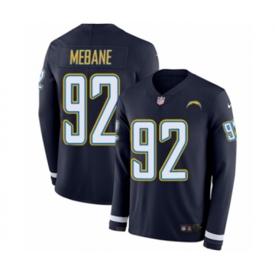 Men's Nike Los Angeles Chargers #92 Brandon Mebane Limited Navy Blue Therma Long Sleeve NFL Jersey