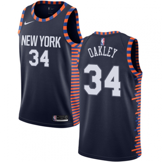 Men's Nike New York Knicks #34 Charles Oakley Swingman Navy Blue NBA Jersey - 2018 19 City Edition