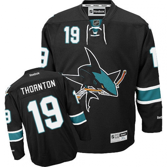 Youth Reebok San Jose Sharks #19 Joe Thornton Premier Black Third NHL Jersey