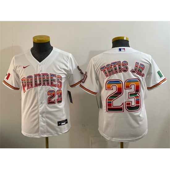 Youth San Diego Padres #23 Fernando Tatis Jr. White Mexico Cool Base Stitched Baseball Jersey