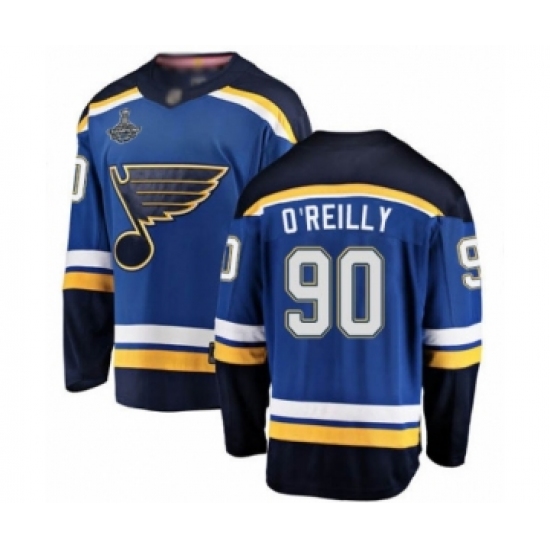 >Youth St. Louis Blues #90 Ryan O'Reilly Fanatics Branded Royal Blue Home Breakaway 2019 Stanley Cup Champions Hockey Jersey