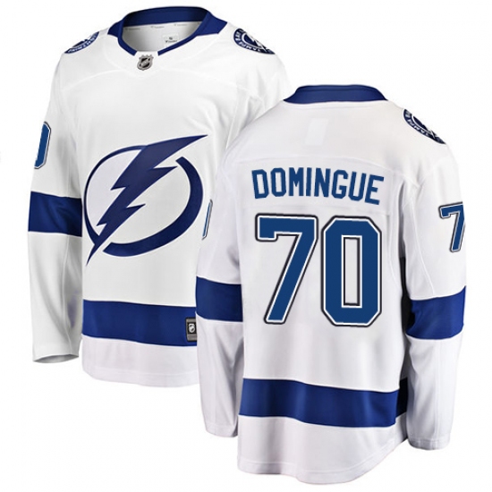 >Youth Tampa Bay Lightning #70 Louis Domingue Fanatics Branded White Away Breakaway NHL Jersey
