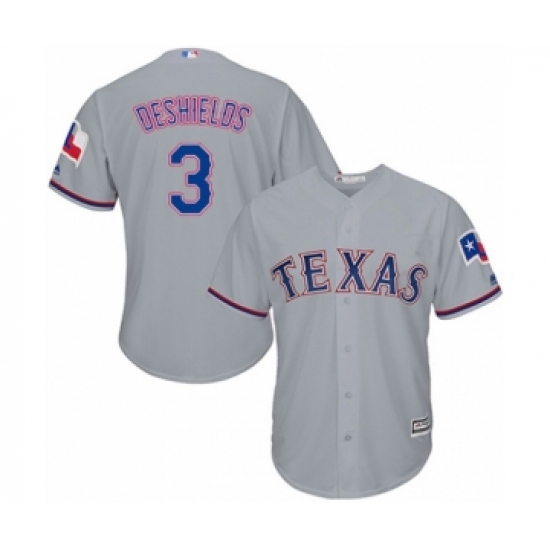 Youth Texas Rangers #3 Delino DeShields Jr. Authentic Grey Road Cool Base Baseball Player Jersey