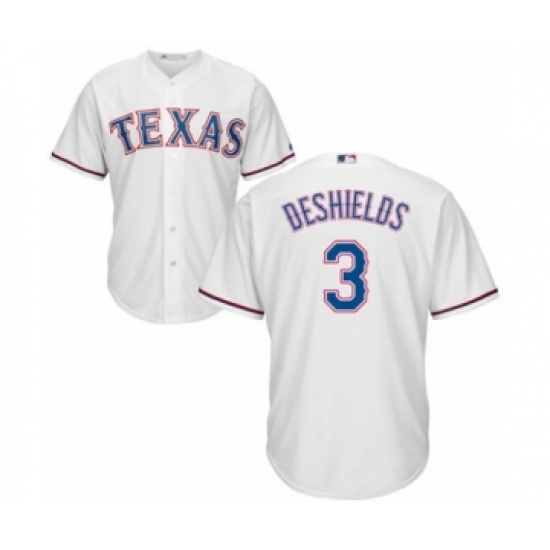 Youth Texas Rangers #3 Delino DeShields Jr. Authentic White Home Cool Base Baseball Player Jersey