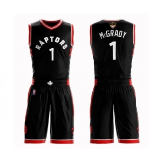 >Youth Toronto Raptors #1 Tracy Mcgrady Swingman Black 2019 Basketball Finals Bound Suit Jersey Statement Edition
