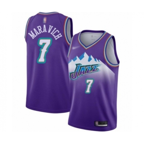 >Youth Utah Jazz #7 Pete Maravich Swingman Purple Hardwood Classics Basketball Jersey